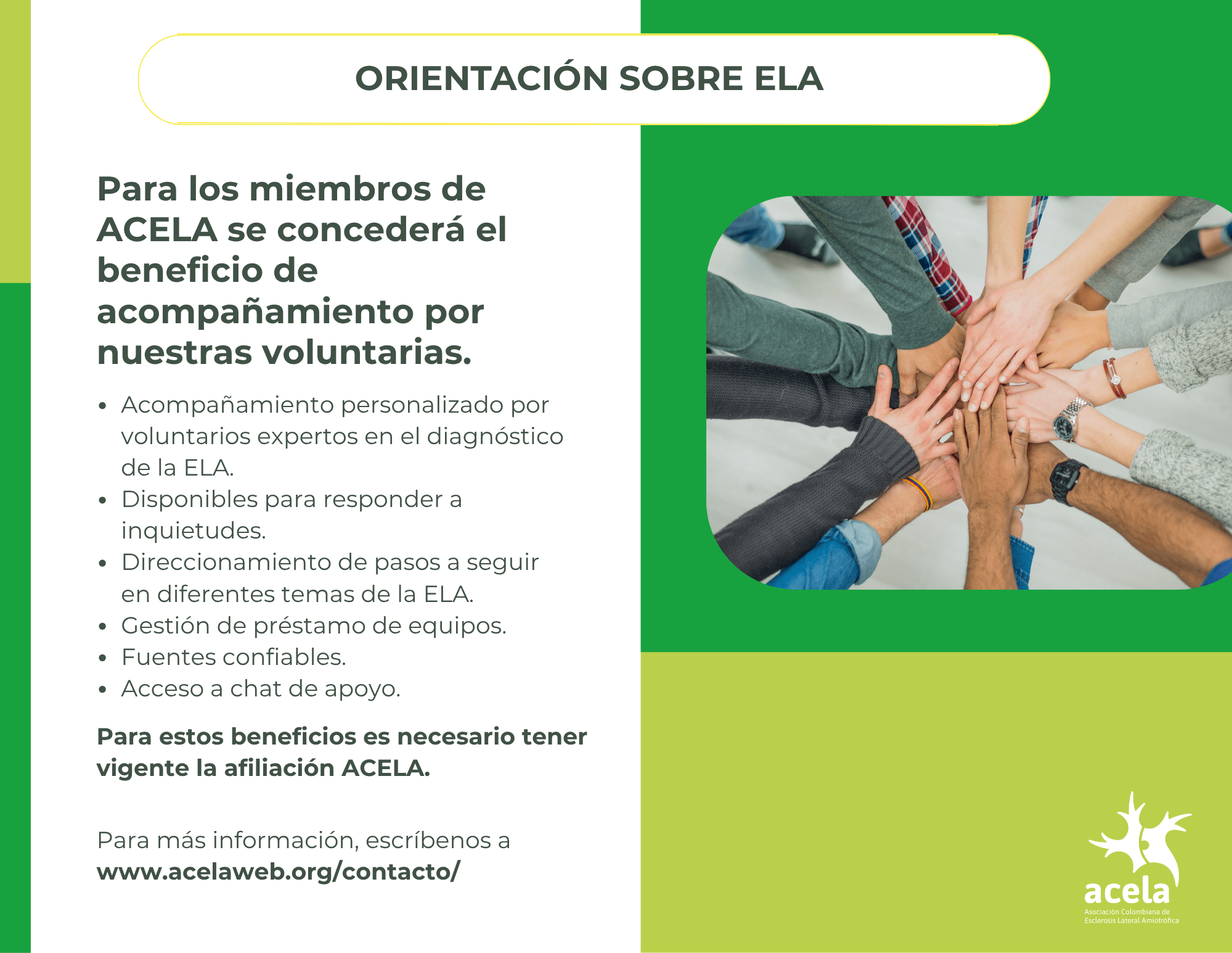 En la Asociación Colombiana de Esclerosis Lateral Amiotrófica tenemos un canal donde recibimos donaciones de equipos y los facilitamos a los pacientes para su bienestar y calidad de vida. Si tienes algo para donar no dudes en contactarnos a través de nuestros canales de comunicación.